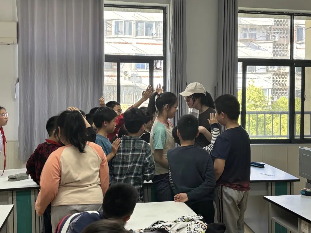 针对课堂上讲解的知识,主讲人为小朋友们精心设计了一个难度适中的问答环节。面对提问,孩子们纷纷化身“水生小百科”,踊跃抢答:“我知道!白鱀豚的胸鳍像手掌的形状!”“中华鲟洄游是为了生宝宝!”现场举手的身影此起彼伏,气氛热烈而活跃。答对问题的“科学小达人”还获得了特制礼物——江豚3D钥匙扣,既萌趣又充满纪念意义。孩子们迫不及待地将礼物挂在书包上,兴奋地表示要“带着长江朋友回家”。