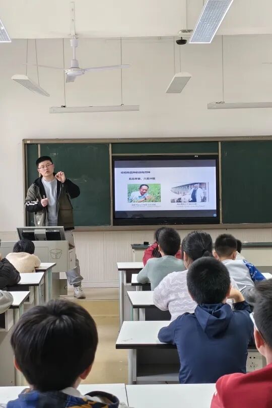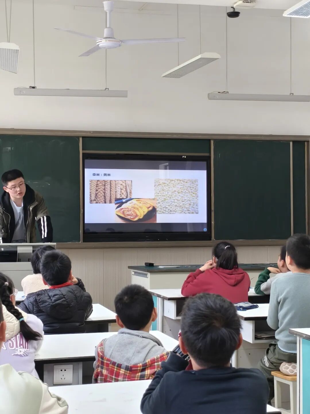 本次讲座由华中农业大学博物馆讲解员陈玉坤主讲。“五谷是哪五谷?”讲解员以问题开场,孩子们纷纷举手抢答:“水稻、小麦!”在一片热闹声中,知识的脉络逐渐清晰。