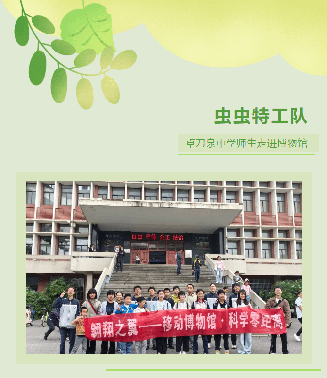 5月10日,卓刀泉中学的生物课迎来特别企划——华中农业大学博物馆昆虫专题实践课生动开讲。课程以“观察·解码·共生”为主线,通过“理论+田野”双模块教学,让学生掌握昆虫鉴别、野外观察等核心技能。在主讲老师刘如达的带领下,20多位同学完成从课本到真实生物的认知跨越,许多人在课后笔记中写下:“原来身边隐藏着很多的虫虫世界!”