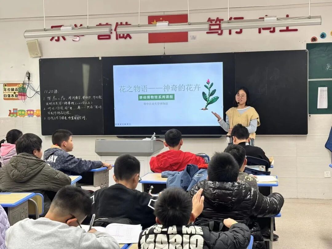 你知道绣球花为何能变色吗?自然界还有哪些造型奇特的花?11月27日,华中农业大学博物馆讲解员李昕琪带着移动博物馆课程《花之物语——神奇的花卉》走进洪山一小书城路分校,以趣味科普开启沉浸式研学,为孩子们揭开花卉的自然奥秘。
