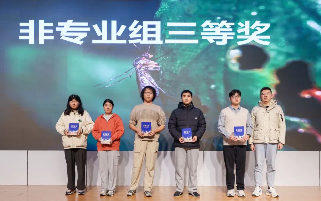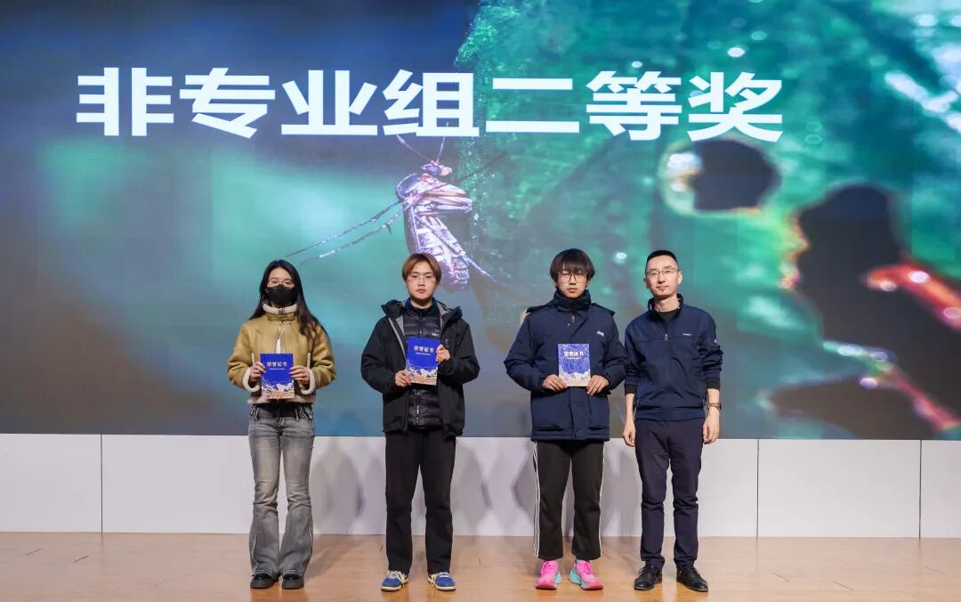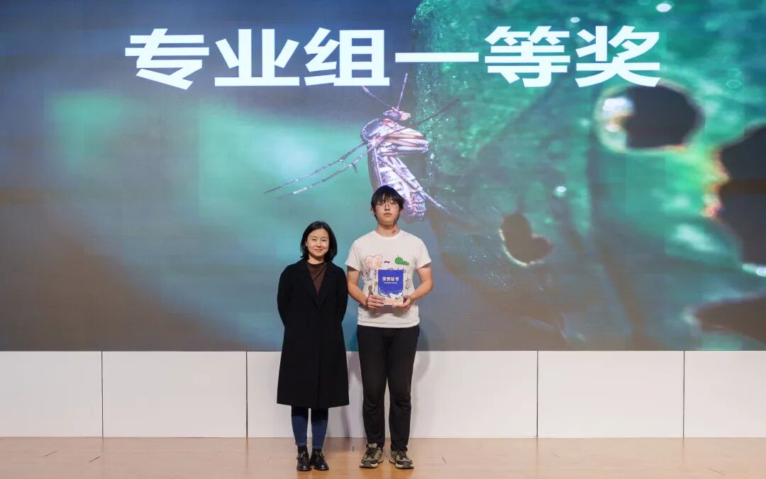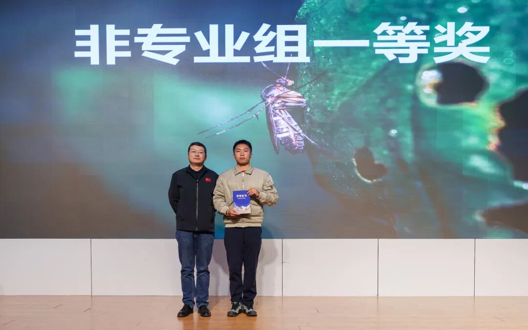 随后,获奖代表登台分享心得。专业组一等奖获得者郑铁宇同学讲述了自己在生活中捕捉昆虫瞬间的故事,呼吁大家无需特定时间地点,只需留心观察便能发现昆虫世界的精彩;非专业组一等奖获得者陆博同学则分享了与昆虫结缘的点滴,鼓励同学们在专业学习之余,静心感受自然之美,成为自然的发现者与记录者。