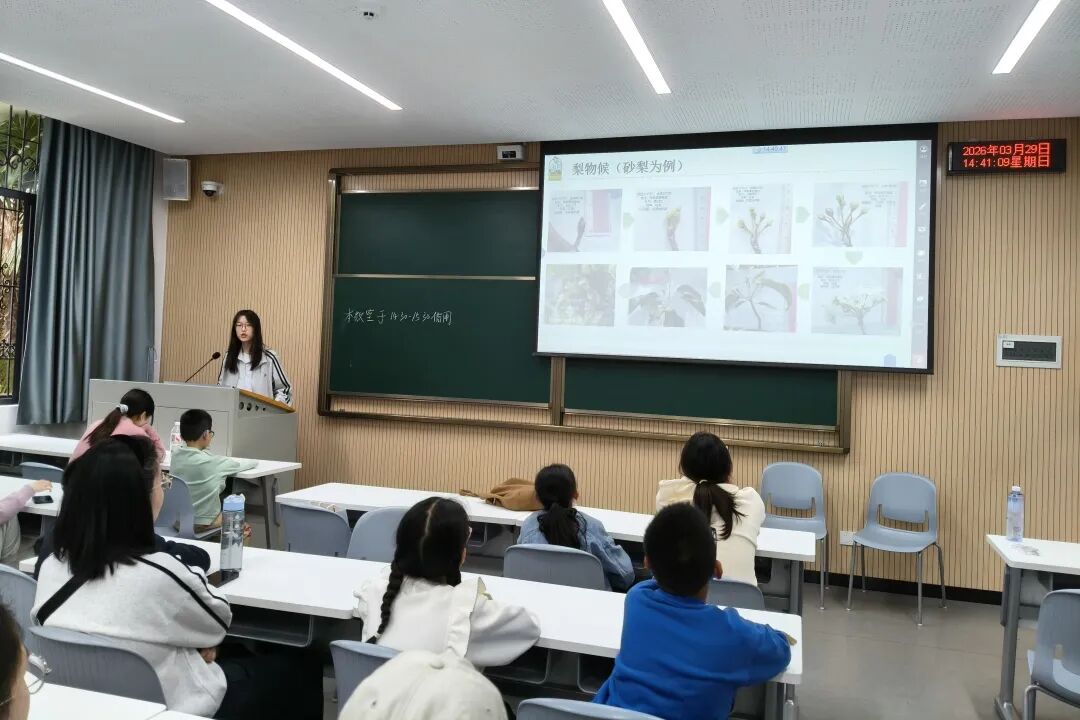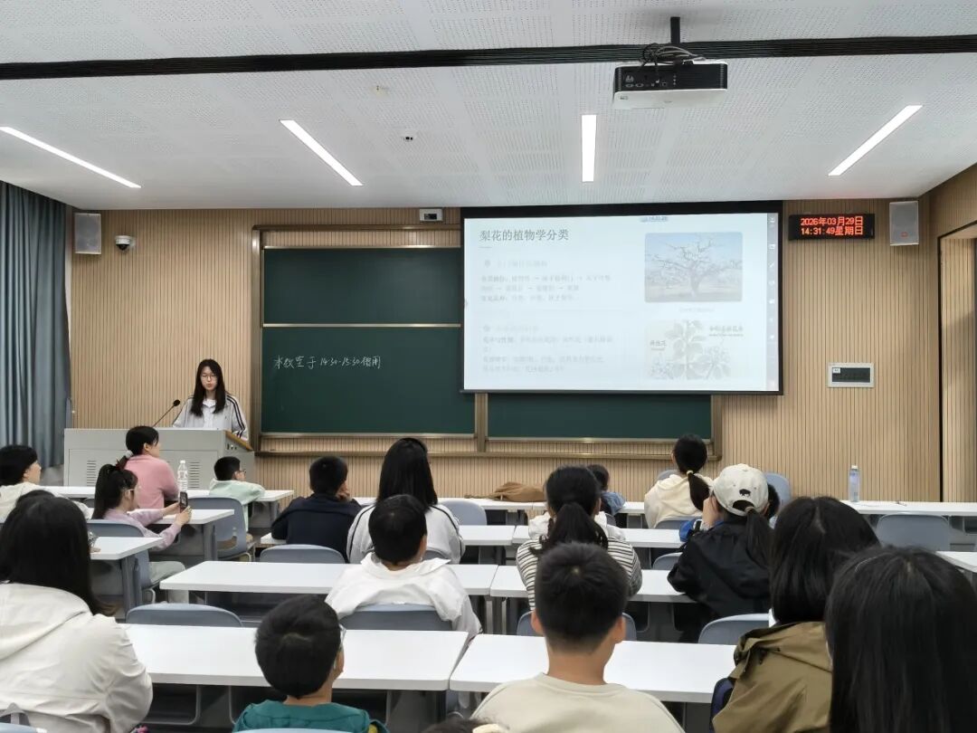 春分二候,梨雪飘香。2026年3月29日,华中农业大学博物馆举办“狮山花信·二十四笺”系列科普活动,以春分二候的梨花为主题,主讲人张鑫带领小朋友们走进梨花的世界,通过教室授课与户外探索相结合的方式,学习植物知识,感受自然之美,让传统物候文化在趣味科普中生根发芽。