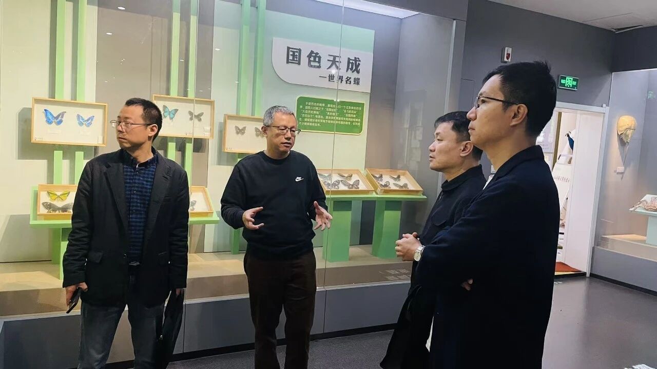 在姜昊馆长的陪同下,调研组一行依次走进博物馆五大主题展厅——“蛰鸣蛱翩”“野性珍灵”“温驯家园”“本草芳华”与“大地宝藏”,系统参观了涵盖昆虫、野生动物、家禽家畜、植物及矿物等类别的丰富馆藏,近距离感受自然之奇与生命之美。