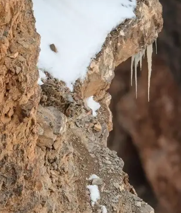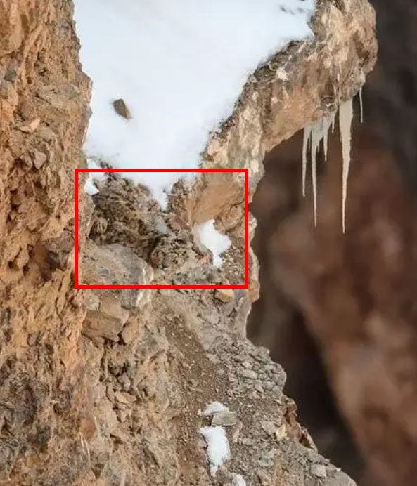 雪豹有“雪山之王”之称,主要分布于青藏高原、帕米尔高原、天山山脉、阿尔泰山脉及我国西部和中亚东部的其他高山地区。其皮毛上常有黑色点状斑和环形斑,尾巴长而粗大,在岩石堆中是极好的保护色,仿佛披了一件隐身衣,不留心很难发现它们。下图岩石中有一只隐藏得很好的雪豹,大家可以找到它吗?