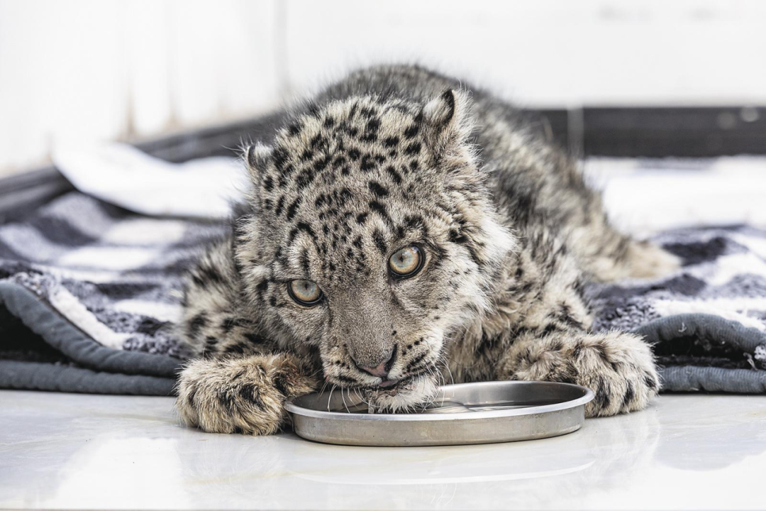 受伤小雪豹“凌小蛰”(来源:青海野生动物救护繁育中心)