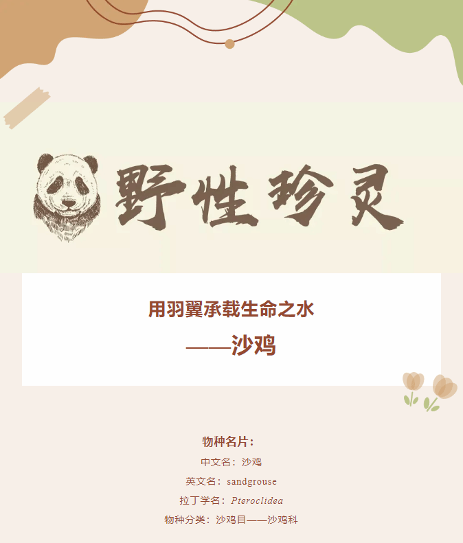 在干旱的荒漠与草原之上,有一种鸟类用独特的生存智慧破解了 “水与生命” 的难题。它们不凭借尖锐的爪牙,也不依赖迅捷的奔跑,而是靠腹部的像海绵般储水的羽毛,在绝境中为后代撑起生机。这种“沙漠生存大师”,就是沙鸡科的独特成员——沙鸡。