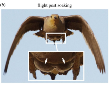 沙鸡取水前后的羽毛变化以及蓄水的区域