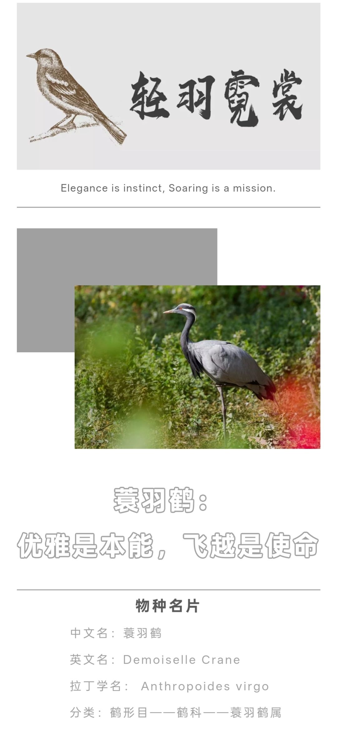 因体型娇小玲珑,举止娴雅,性情羞怯,蓑羽鹤在鸟类爱好者中有着“闺秀鹤”的雅称。它们颊部两侧的白色羽簇和胸前的蓑状羽毛更增添了这份优雅气质。