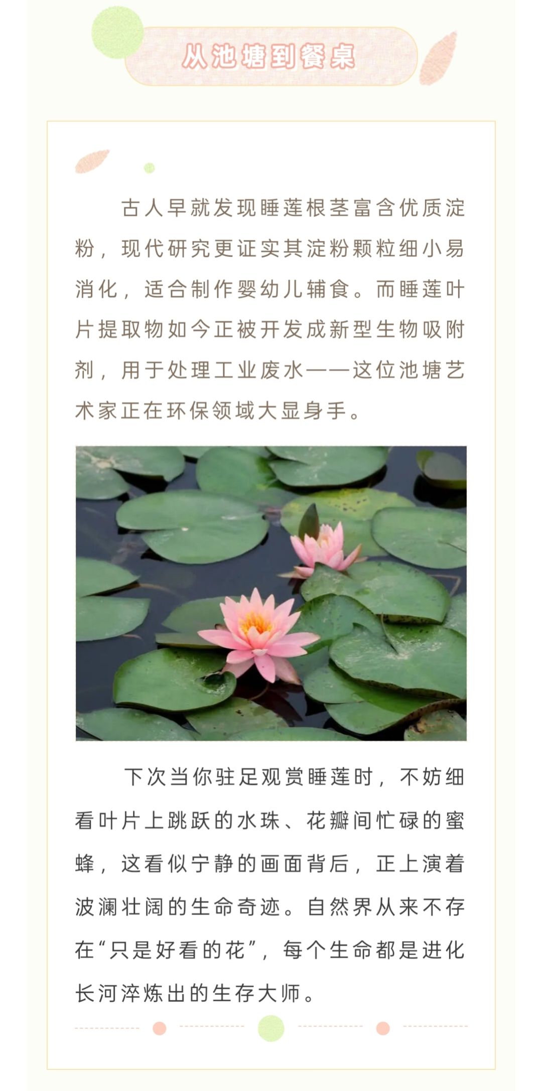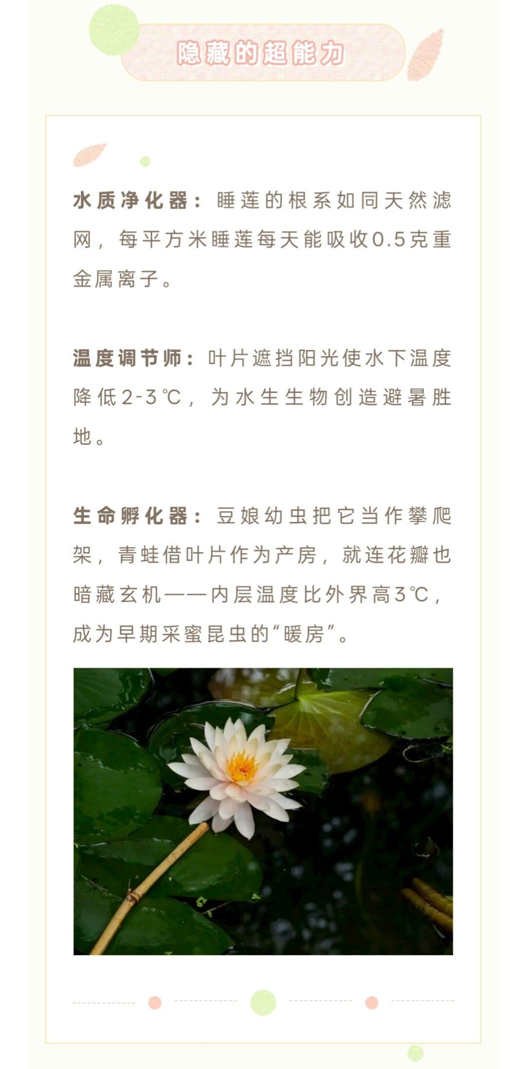 本草芳华 | 睡莲:池塘里的“生态工程师”