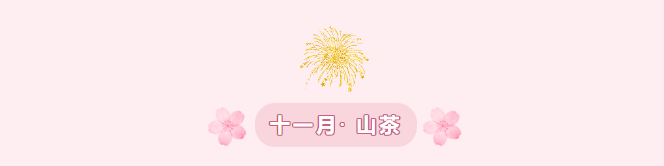 山茶花色以红、白、粉为主,亦有复色品种。其花期12月至翌年3月,正值农历十一月前后,故是“十一月月令花”。山茶花与梅花、迎春花、水仙花并称“雪中四友”。清代李渔盛赞山茶:“花之最能持久,愈开愈盛者,山茶、石榴是也。然石榴之久,犹不及山茶……具松柏之骨,挟桃李之姿,历春夏秋冬如一日,殆草木而神仙者乎?”。